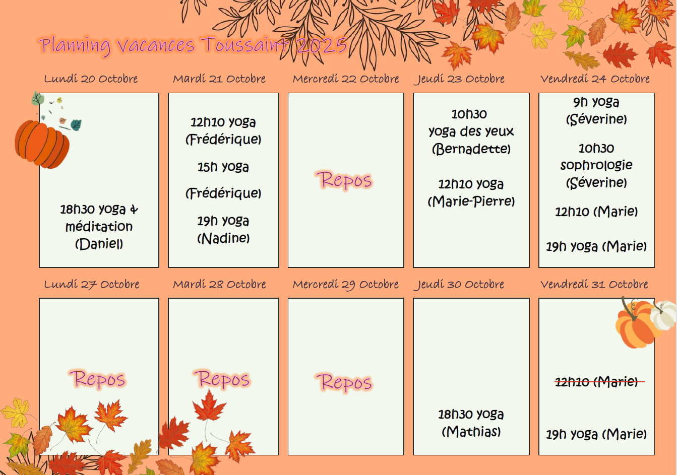 Planning vacances d’automne 2025